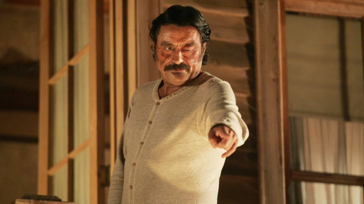 Silas Adams' man Hawkeye returns, explaining his disappearance with lame excuses. He so irritates Dan Dority that the two begin to fight, Dority quickly dominating the proceedings, with Swearengen-despite pleas from Adams-refusing to intrude. When the drunk Slippery Dan wanders in and admires the beating Dority is handing out ("Christ, that's a country ass-kicking.") Adams unleashes his fury on Dan, impaling him on a set of antlers beside the bar. "He just twelve-pointed Slippery Dan," says Tom Nuttall in amazement.[2]